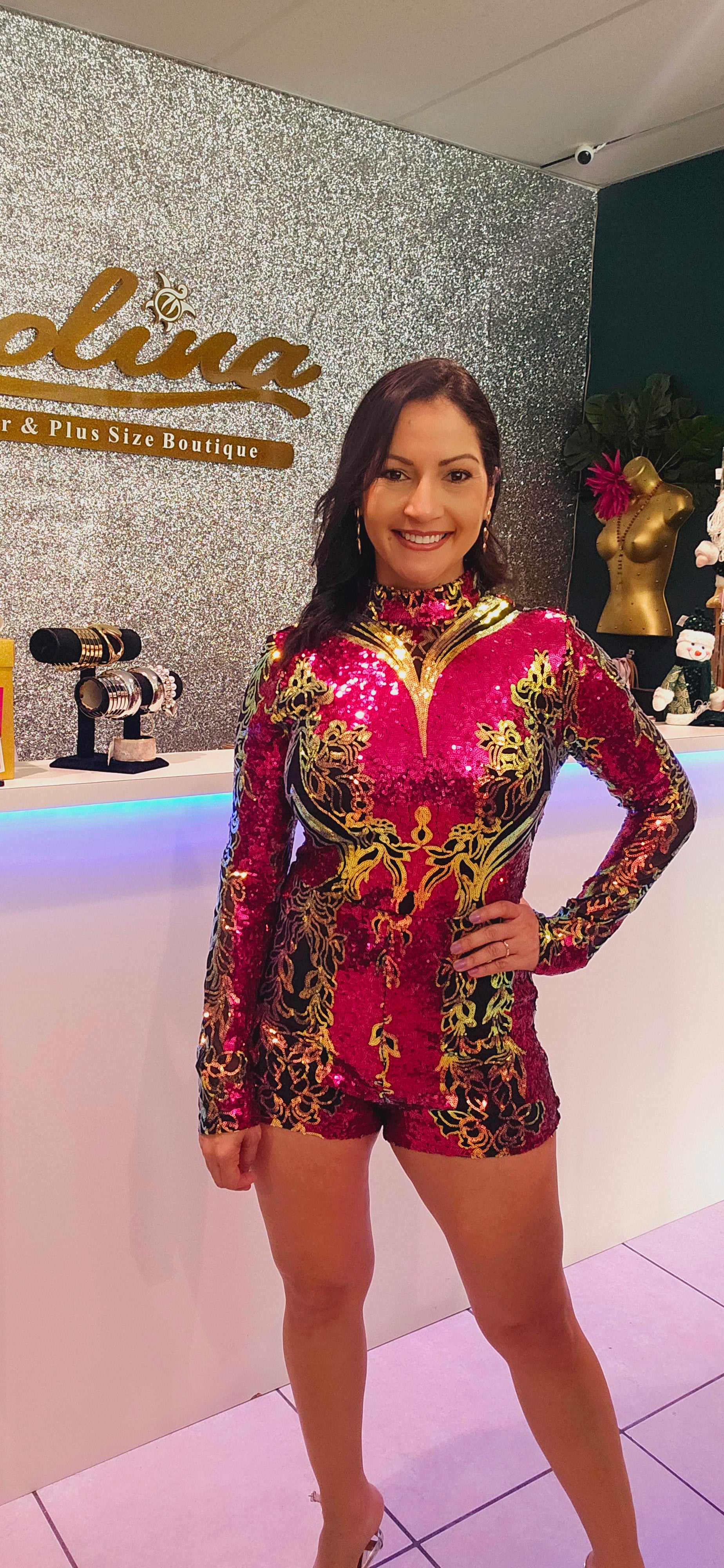 Introducing the Glam Romper - the ultimate combination of style and comfort. Made with high-quality sequin fabric, this romper is designed to make you stand out in any crowd. Transform your look and shine bright with this must-have piece in your wardrobe. Embrace the glamour and make a statement with the Glam Romper.
