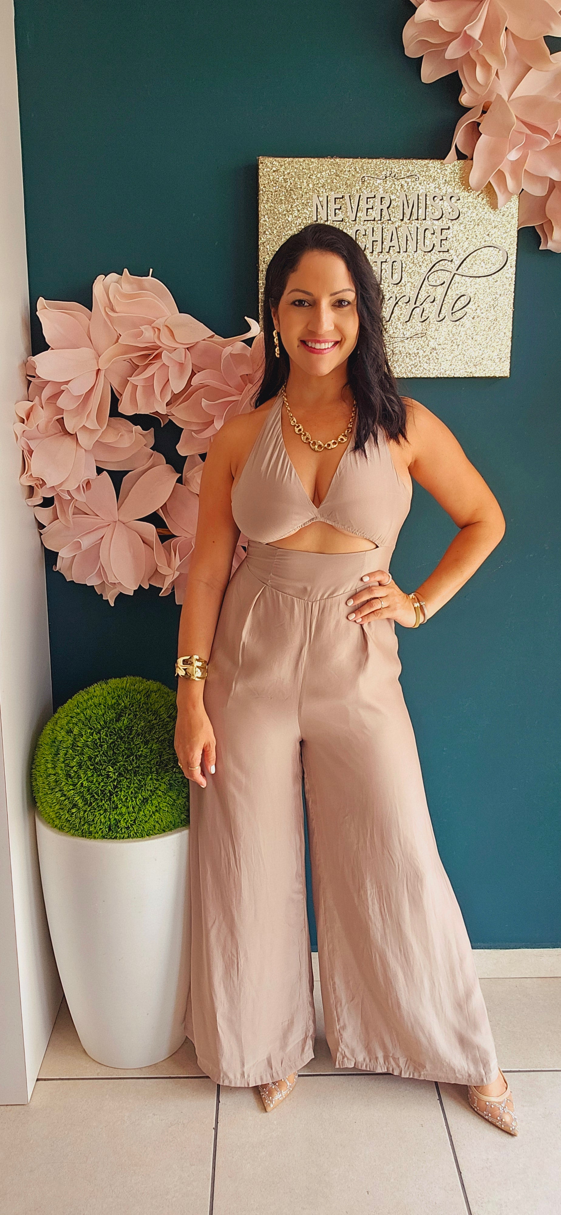 Step into effortless style with our Halter Jumpsuit in a warm tan shade. Its flattering halter neckline and relaxed fit make it perfect for sunny days or casual nights out. Easy to dress up or down, this jumpsuit brings playful charm and comfort to your wardrobe. Only available in Tan color.